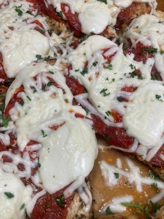a tasty treat for all those pizza lovers! Pan seared chicken with house pizza sauce, pepperoni and shredded mozzarella, all melted together in an ooey goodnesss!