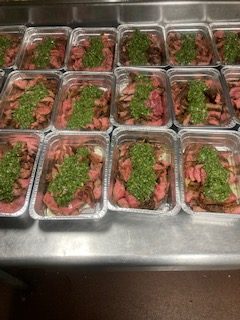 A wonderful dish with grilled seasoned steak tips dressed with a chimichurri sauce made from cilantro, lime, parsley, garlic, vinegar, seasoning.